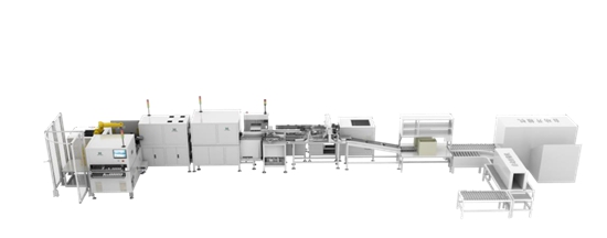 鈑金柔性加工產(chǎn)線將激光切割設(shè)備、上下料設(shè)備、智能分揀設(shè)備、鈑金料庫、RGV、智能行吊等結(jié)合成一條產(chǎn)線,從金屬材料的進(jìn)料、傳送、堆放和卸料全部實(shí)現(xiàn)自動化