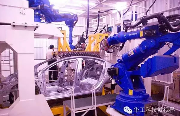 其典型裝備之汽車白車身智能激光焊接生產線,可滿足不同車型混線生產,白車身快速定位、激光釬焊、焊接與搬運工業(yè)機器人應用等技術融為一體,平均一分鐘可焊接完成一部車,較之傳統(tǒng)的點焊,速度提升30%以上,工藝成本降低40%,車身剛度提高30%。