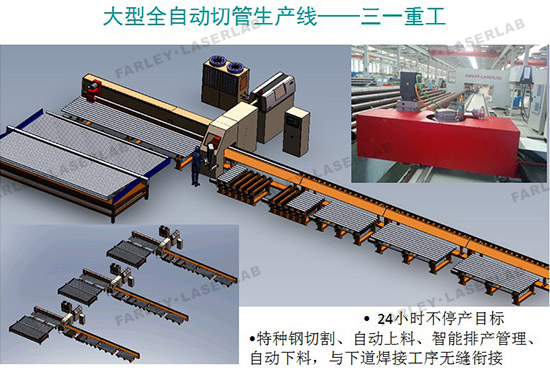 華工法利萊研發(fā)的國內(nèi)首套數(shù)控激光切管生產(chǎn)線在“三一重工”全面投產(chǎn)