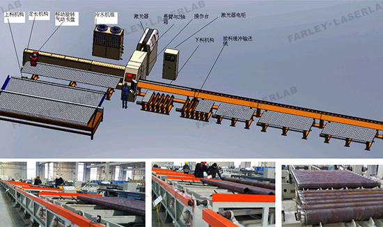 “全自動(dòng)化數(shù)控激光切管生產(chǎn)線”始于2011年3月份?;凇叭恢毓ぁ比娓倪M(jìn)生產(chǎn)工藝,提高生產(chǎn)效率的需求實(shí)際,華工法利萊研制開發(fā)出數(shù)控激光切管系統(tǒng)(JKG9015)3臺,目前3臺激光切管系統(tǒng)分別布局在三條不同的生產(chǎn)流水線上(每條線總長60米,寬10余米)。該切管線能實(shí)現(xiàn)鋼管材料從上料、輸送、定長、切割、下料、傳輸?shù)搅魉€不同下續(xù)環(huán)節(jié)等整個(gè)過程的完全自動(dòng)化。