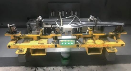 ⑴落料片的生產(chǎn)。落料片是在開卷落料線上生產(chǎn)出來特定輪廓的料片,然后將其運(yùn)送至熱成形線,由機(jī)器人通過真空吸盤將落料片送至打碼機(jī)打碼之后,放至輸送線上傳送至加熱爐。