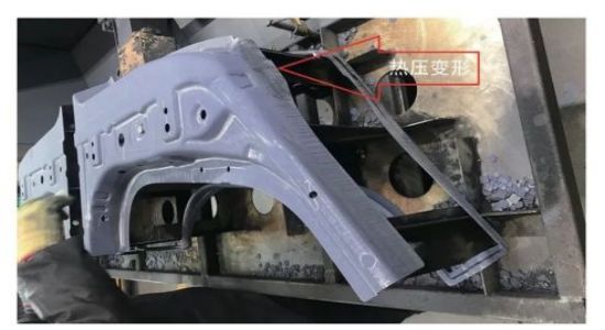 ⑵金相組織奧氏體化。初始硼鋼的金相組織是鐵素體和珠光體。先加溫至930~950℃再保溫,使得板料內(nèi)部組織完全奧氏體化,奧氏體組織的塑性非常好,強(qiáng)度低,非常適合沖壓加工。