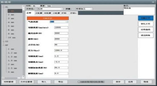 切割三維工件時(shí)并不一直是直線切割,在切割過程中會(huì)有大量的拐角、凸起或變向,機(jī)床的實(shí)際運(yùn)行速度是在不斷變化的。為此,我們采集了實(shí)時(shí)路徑速度、激光器功率、頻率、占空比等參數(shù)數(shù)據(jù),根據(jù)其變化匹配出的最佳切割參數(shù),找其相對(duì)應(yīng)的函數(shù)關(guān)系,實(shí)現(xiàn)輸出變量將時(shí)刻變化的參數(shù)揉到機(jī)床的運(yùn)動(dòng)中,實(shí)現(xiàn)效率不減,切割質(zhì)量上升,或者效率略降,切割質(zhì)量提升。將該公式寫入系統(tǒng)程序中,通過人機(jī)交互界面直接激活功能即可使用。