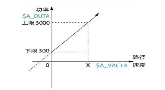激光功率和進(jìn)給路徑速度組成一個(gè)函數(shù):使用FCTDEF可以定義三階多項(xiàng)式,形式為y=f(x)=a0+a1x+a2x2+a3x3;直線段多項(xiàng)式舉例:上限為1000、下限為-1000、縱坐標(biāo)線段為a0=$AA_IM[x]且斜率為1的多項(xiàng)式定義:FCTDEF(1,-1000,1000,$AA_IM[x],1)。