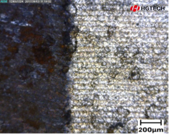 圖5 制動(dòng)盤激光清洗前后對(duì)比表面
