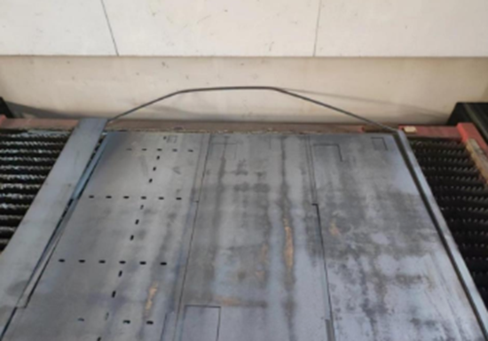 切割厚板需要更大功率的激光設(shè)備,產(chǎn)生的熱量會(huì)使得局部區(qū)域發(fā)生明顯的熱變形,切割后周圍區(qū)域的形變量會(huì)使得預(yù)先或者最后切割的廢料線交錯(cuò),導(dǎo)致切割到零件;可以說(shuō)原有的廢料線方案本身并沒(méi)有考慮到實(shí)際的生成需求,罔顧形變量、熱效應(yīng)等在切割過(guò)程中帶來(lái)的影響,因此無(wú)法處理四邊邊框,存在分揀難的問(wèn)題;再加上因鋼板本身存在彎曲狀態(tài)以及切割過(guò)程中零件與板材分離產(chǎn)生的應(yīng)力釋放,極易出現(xiàn)小塊廢料翹起“打”到切割頭的情況,輕則噴嘴、保護(hù)鏡報(bào)廢,重則切割頭受損,部件損傷會(huì)導(dǎo)致切割加工頻繁停止,降低生產(chǎn)效率。