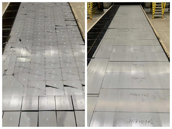 “廢料切斷”一直是激光整板切割的一個(gè)“老大難”問(wèn)題。許多激光切割從業(yè)者經(jīng)常遇見零件粘連在板材上,沒(méi)有完全分?jǐn)?;或是剩余廢料整體與零件錯(cuò)位,而廢料本身龐大,無(wú)法移動(dòng),導(dǎo)致零件卡在其中(如圖1-圖2所示)。這些情況會(huì)給現(xiàn)場(chǎng)人員的分揀工作帶來(lái)巨大麻煩,加工效率也受到限制,因此引入合理的廢料分?jǐn)嗍侄纬蔀榧す饧庸ば袠I(yè)的“燃眉之急”。