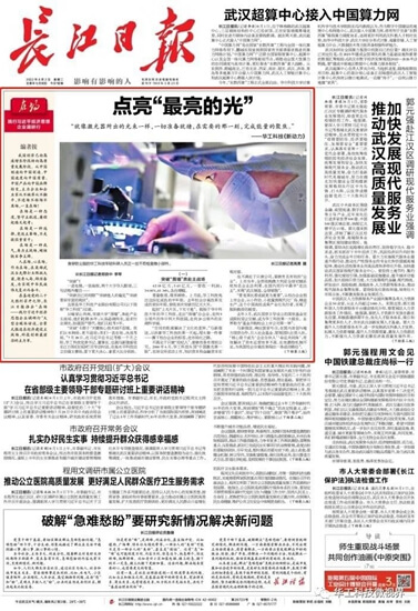 《長(zhǎng)江日?qǐng)?bào)》頭版頭條報(bào)道華工科技點(diǎn)亮“最亮的光”