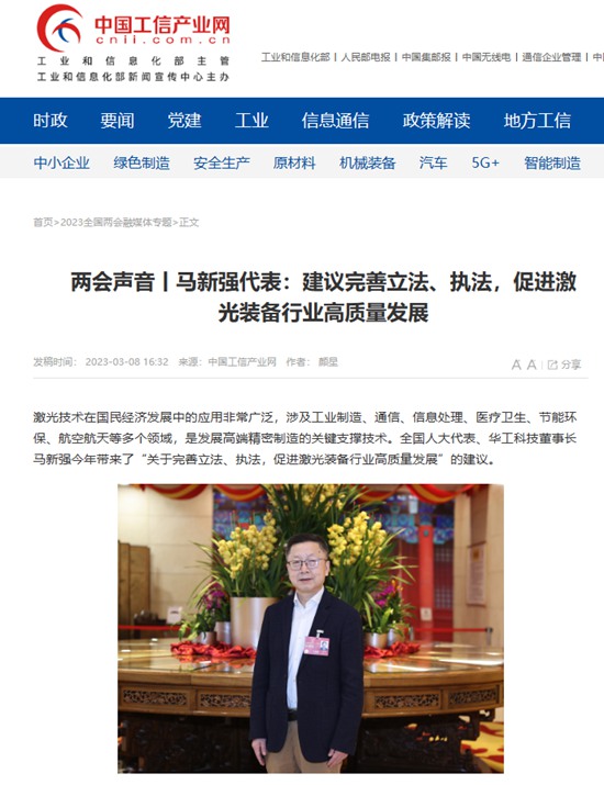 10 兩會聲音丨馬新強代表:建議完善立法、執(zhí)法,促進激光裝備行業(yè)高質(zhì)量發(fā)展
