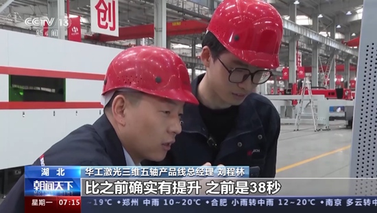 華工激光三維五軸產(chǎn)品線總經(jīng)理 劉程林:35秒切割完成,比之前確實(shí)有提升,之前是38秒。