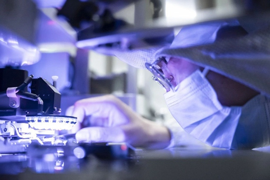 9月13日,記者走進(jìn)華工科技光模塊生產(chǎn)車間,只見儀器的指示燈頻頻閃爍,身著防塵服的技術(shù)人員正完成一支支高端光模塊的裝配、質(zhì)檢?!斑@些光模塊經(jīng)過-40℃至85℃高低溫循環(huán)測試后,將交付到全球主流通信設(shè)備商手中?!碑a(chǎn)線工作人員告訴《中國電子報(bào)》記者。