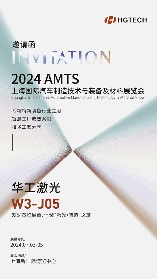 邀請(qǐng)函 | 7月3日--5日,華工激光與您相約AMTS 2024上海國(guó)際汽車(chē)制造技術(shù)與裝備及材料展覽會(huì)!