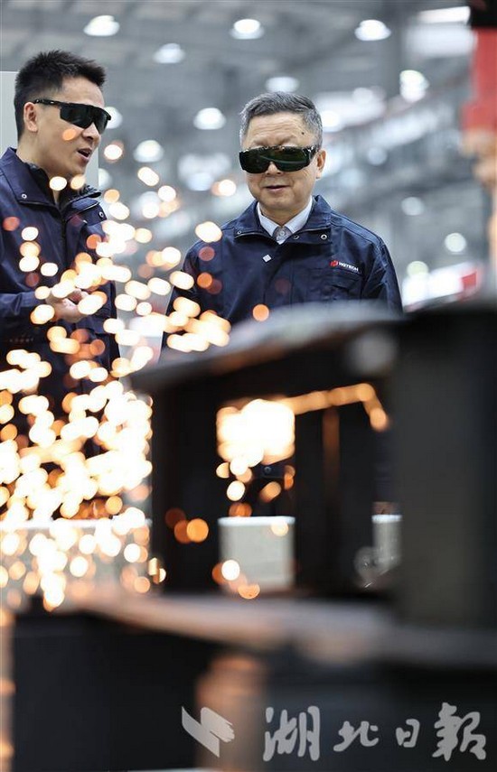 3月14日,陽(yáng)春三月,春寒尚未完全褪去。在華工科技智能制造產(chǎn)業(yè)園葛店園區(qū)生產(chǎn)車(chē)間內(nèi),三維五軸激光切割機(jī)器臂正靈動(dòng)揮舞。隨著一道道弧線劃過(guò),鋼花四濺,仿佛一場(chǎng)科技與工業(yè)碰撞的絢麗煙火秀。華工科技董事長(zhǎng)馬新強(qiáng)身著藍(lán)色工裝,專(zhuān)注地站在機(jī)器旁,眼神緊緊跟隨機(jī)器臂的每一次動(dòng)作,不時(shí)與身旁的工程師低聲討論著算法優(yōu)化。
