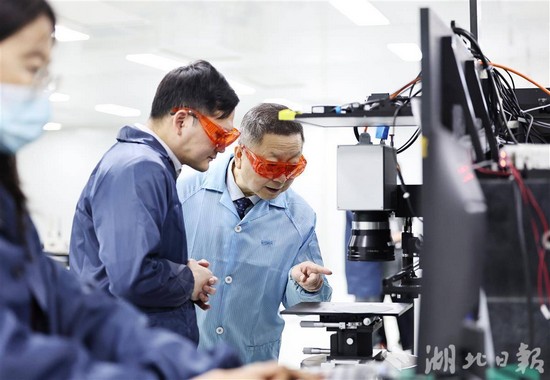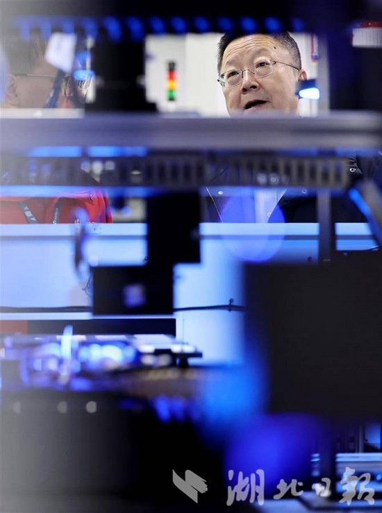 離開(kāi)車(chē)間,馬新強(qiáng)乘車(chē)來(lái)到實(shí)驗(yàn)室,換好服裝,戴上橙色護(hù)目鏡,與研發(fā)人員一起認(rèn)真觀察還在實(shí)驗(yàn)中的高端晶圓激光切割設(shè)備,并不時(shí)提出要求。
