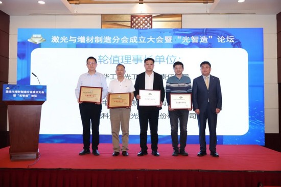 中國(guó)機(jī)床工具工業(yè)協(xié)會(huì)激光與增材制造分會(huì)成立大會(huì)上明確了武漢華工激光工程有限責(zé)任公司、大族激光智能裝備集團(tuán)有限公司、南京中科煜宸激光技術(shù)有限公司、武漢銳科光纖激光技術(shù)股份有限公司為分會(huì)輪值理事長(zhǎng)單位,北方激光研究院有限公司等8家單位為分會(huì)副理事長(zhǎng)單位,并聘請(qǐng)了朱曉、沈?yàn)I、盧智良、崔瑞奇4位專家為分會(huì)高級(jí)顧問,李婷為分會(huì)秘書長(zhǎng),丁輝為分會(huì)副秘書長(zhǎng)。