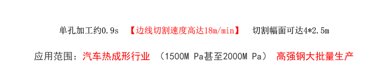 本設備除了可完成工件三維切割以外,還可用于平板切割。同時在此平臺上可實現(xiàn)焊接模塊切換,擴展為激光焊接平臺,實現(xiàn)一機多能。24小時不間斷穩(wěn)定生產,適用于批量生產。
